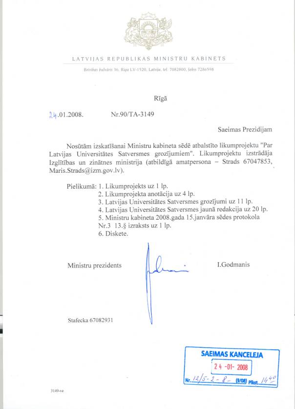 izmaiņām Latvijas Universitātes Satversmes sapulcē un Senātā. Kā arī tiek