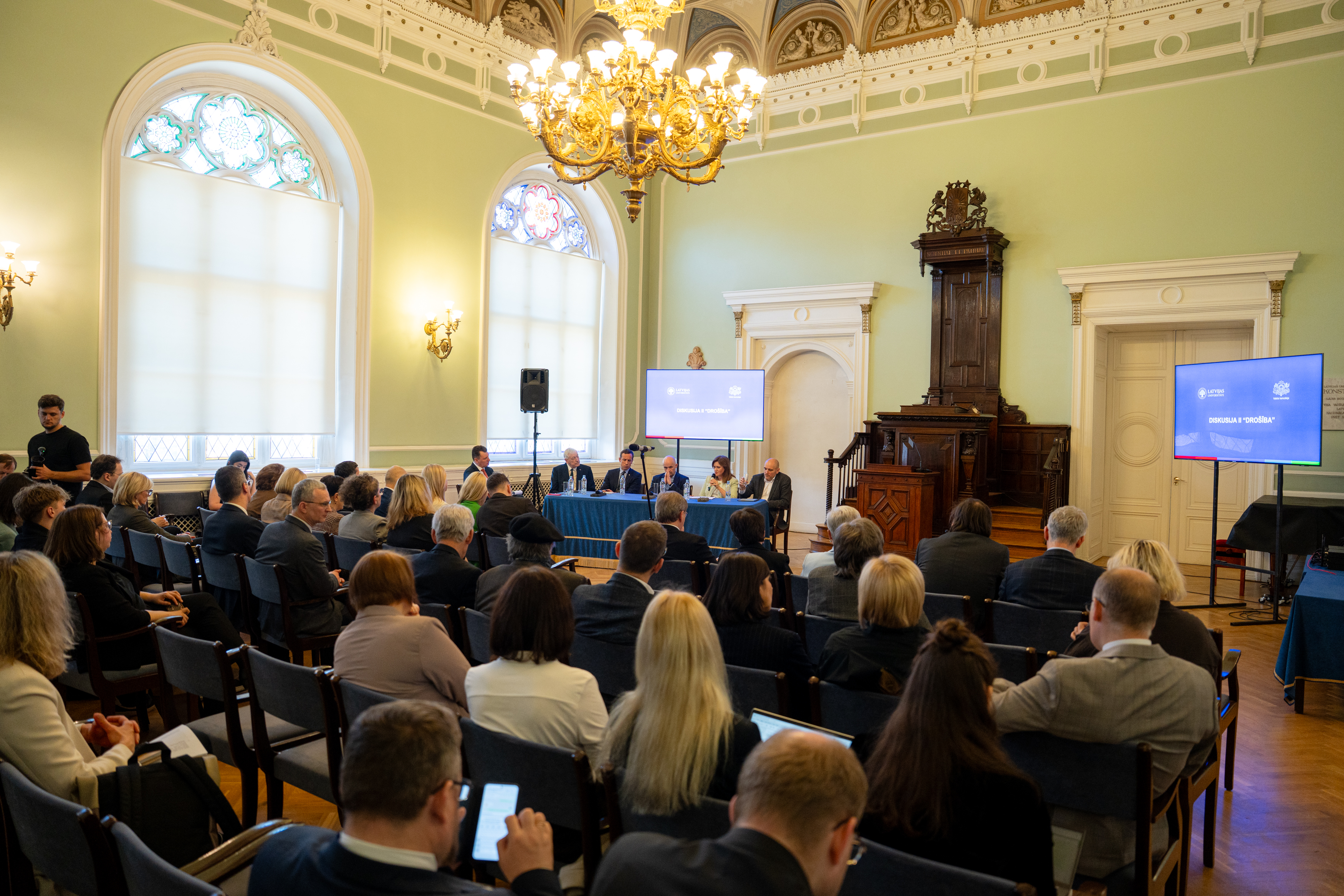 2025.gada 3.aprīlis. Saeimas priekšsēdētājas biedre Zanda Kalniņa-Lukaševica piedalās Latvijas Universitātes diskusijā "Latvija 2050 - demokrātiska, droša un pārtikusi". Foto: Ieva Ābele, Saeima Izmantošanas noteikumi: saeima.lv/lv/autortiesibas