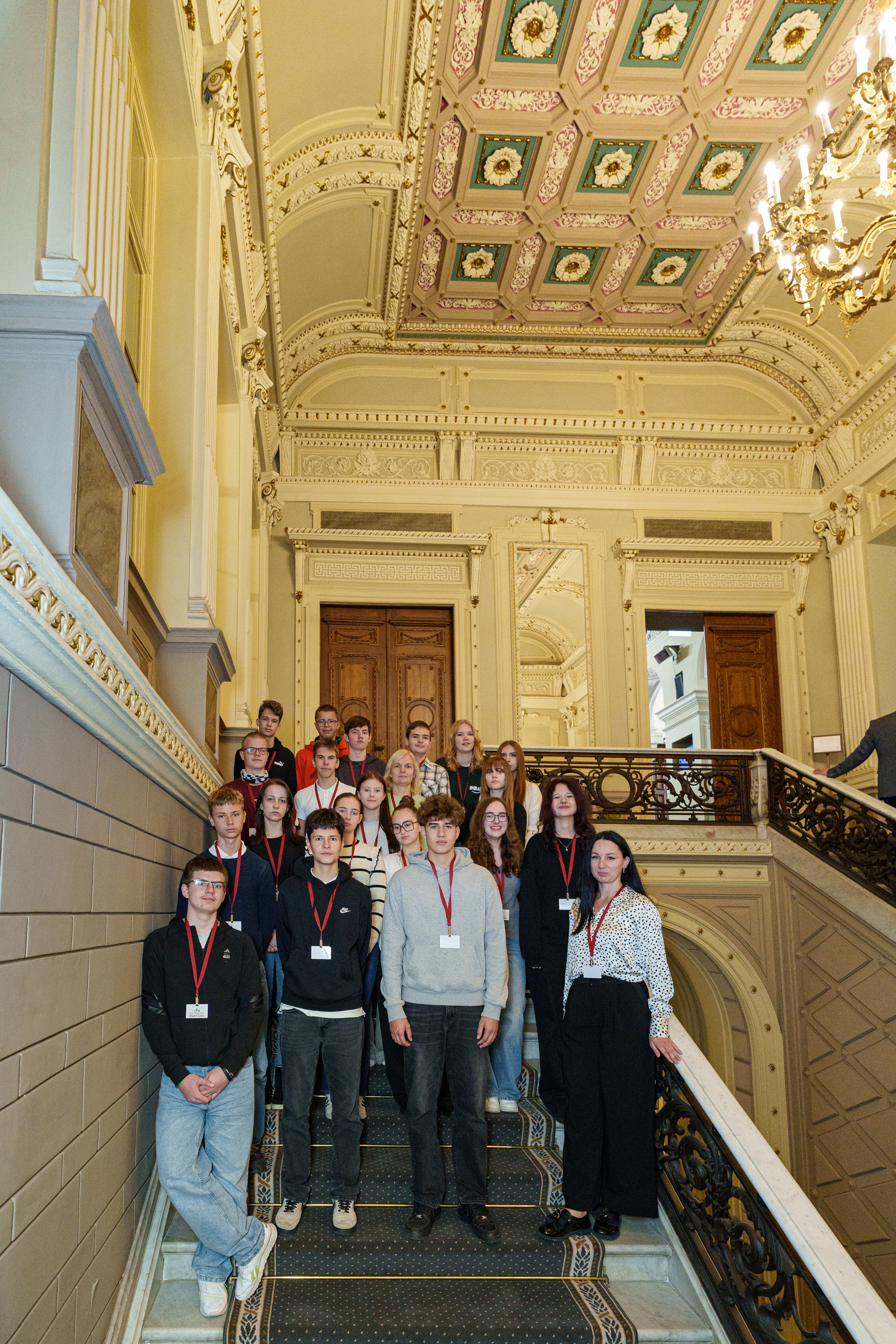 Jelgavas Tehnoloģijas vidusskolas skolēni apmeklē Saeimu skolu programmas "Iepazīsti Saeimu" ietvaros