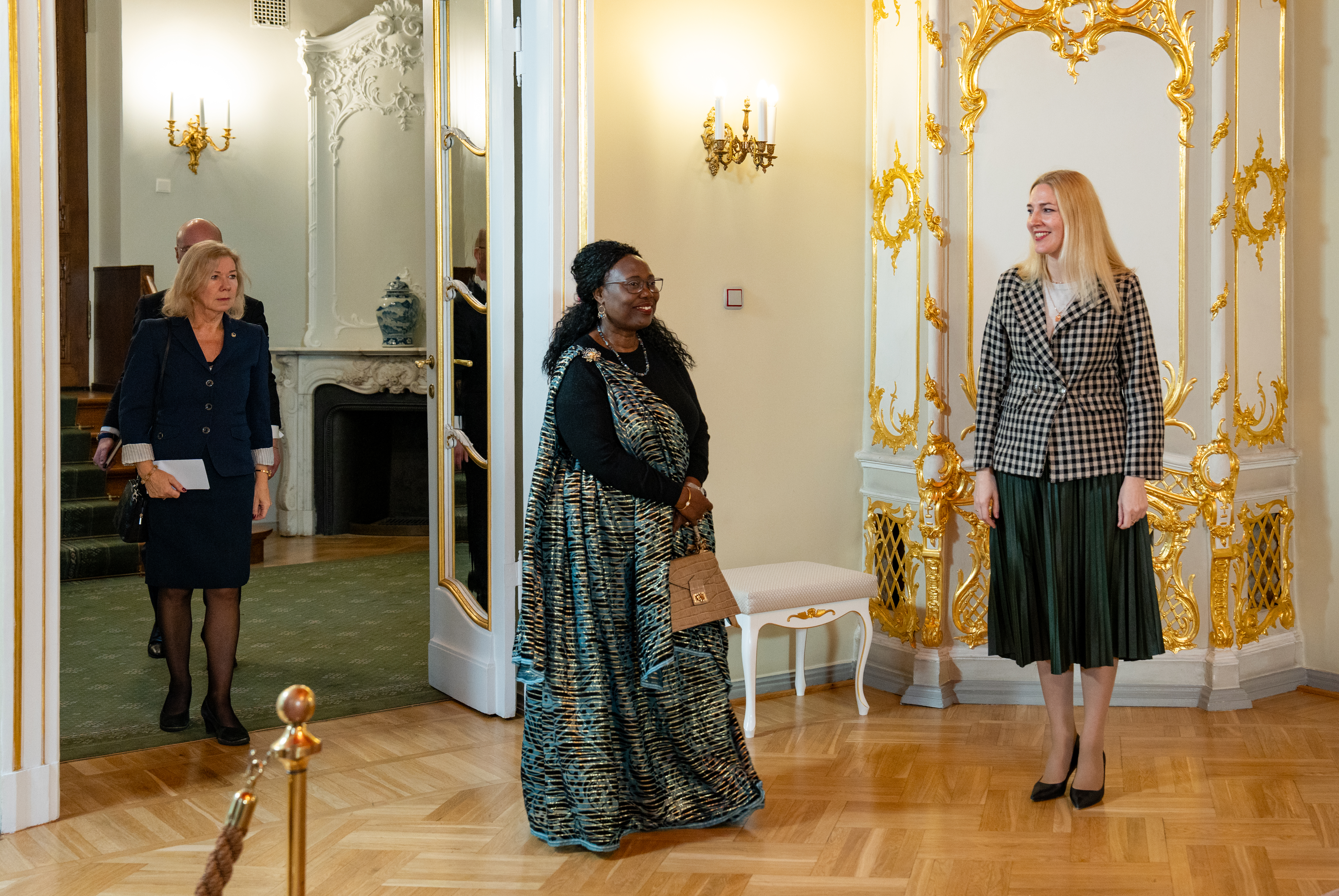 2025. gada 31. oktobris. Saeimas sekretāra biedrs Jānis Grasbergs tiekas ar Burundijas Republikas ārkārtēo un pilnvaroto vēstnieci Latvijas Republikā Annonsiatu Sendazirazu (Annonciata Sendazirasa). Foto: Ieva Ābele, Saeima Izmantošanas noteikumi: saeima.lv/lv/autortiesibas
