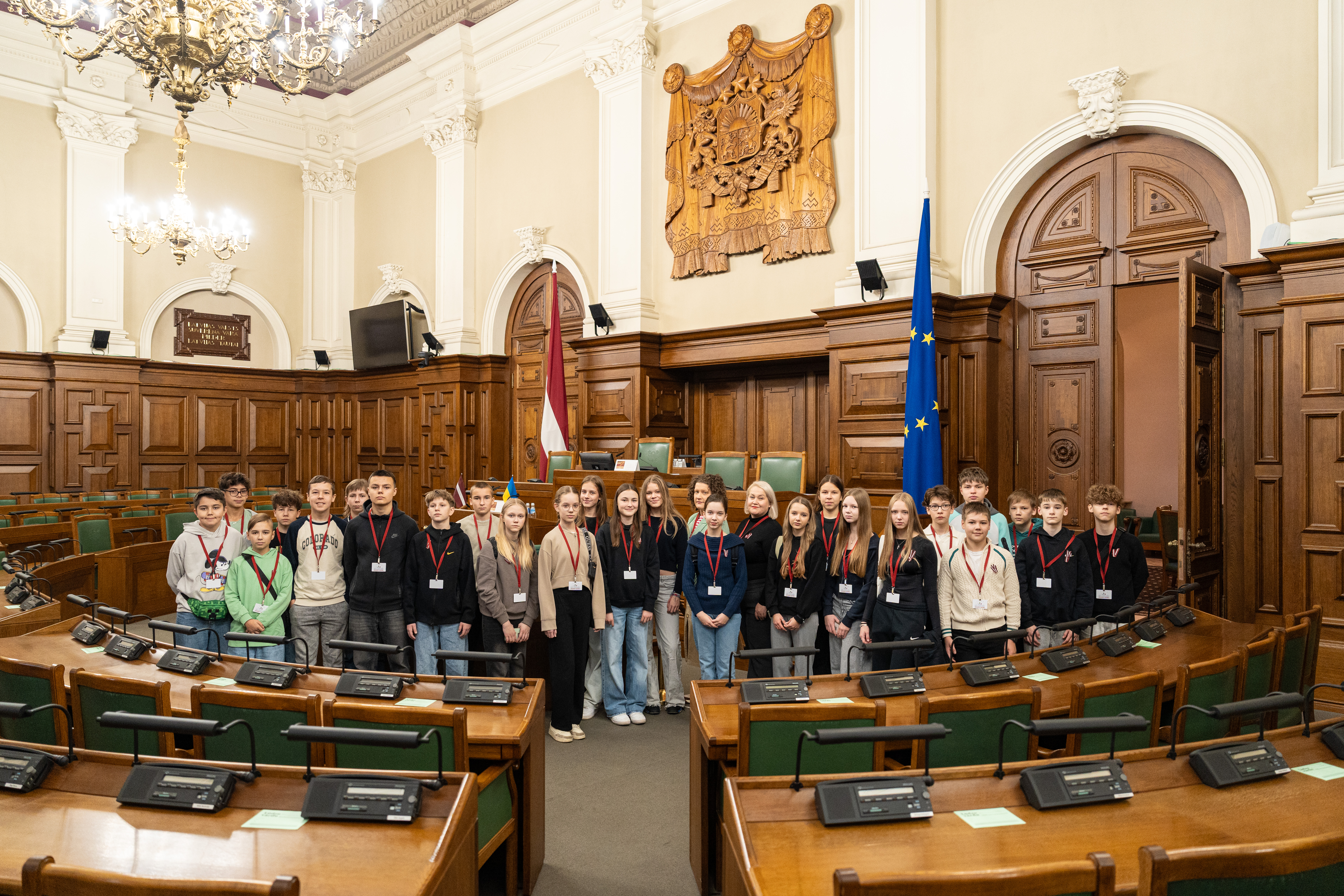 Salaspils 1.vidusskolas skolēni apmeklē Saeimu skolu programmas "Iepazīsti Saeimu" ietvaros