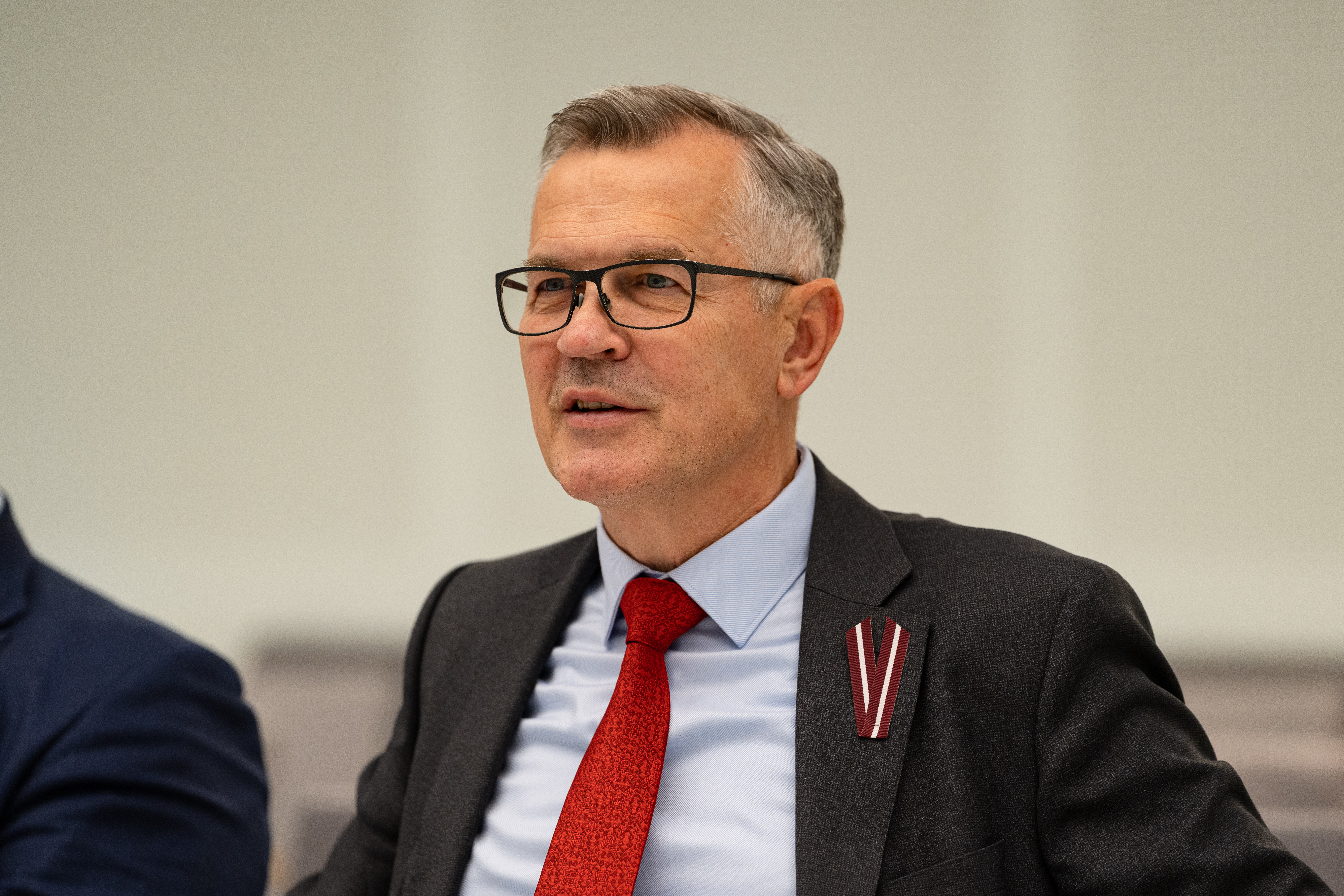 2025.gada 14.novembris. Saeimas Nacionālās drošības komisijas priekšsēdētājs Ainars Latkovskis un Saeimas Aizsardzības, iekšlietu un korupcijas novēršanas komisijas priekšsēdētājs Raimonds Bergmanis tiekas ar Francijas Republikas parlamenta Nacionālās drošības komisijas delegāciju. Foto: Reinis Inkēns, Saeima Izmantošanas noteikumi: saeima.lv/lv/autortiesibas