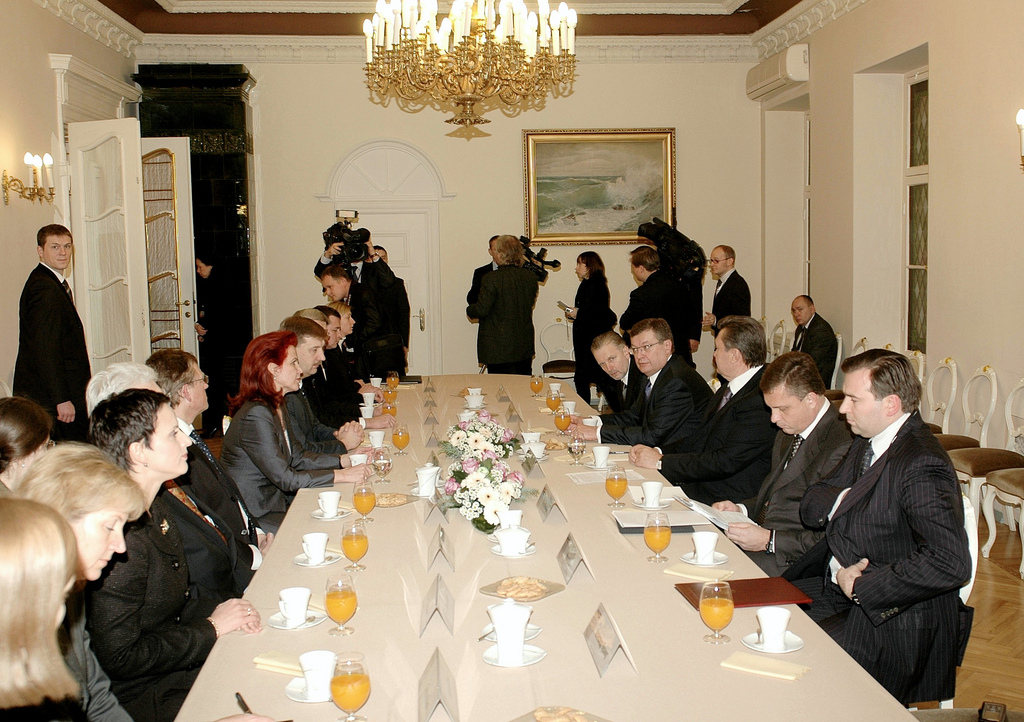 Download image2010.gada 15.decembris. Saeimā viesojas Ukrainas prezidents Viktors Janukovičs. Ar Ukrainas prezidentu tiekas Saeimas priekšsēdētāja Solvita Āboltiņa.
