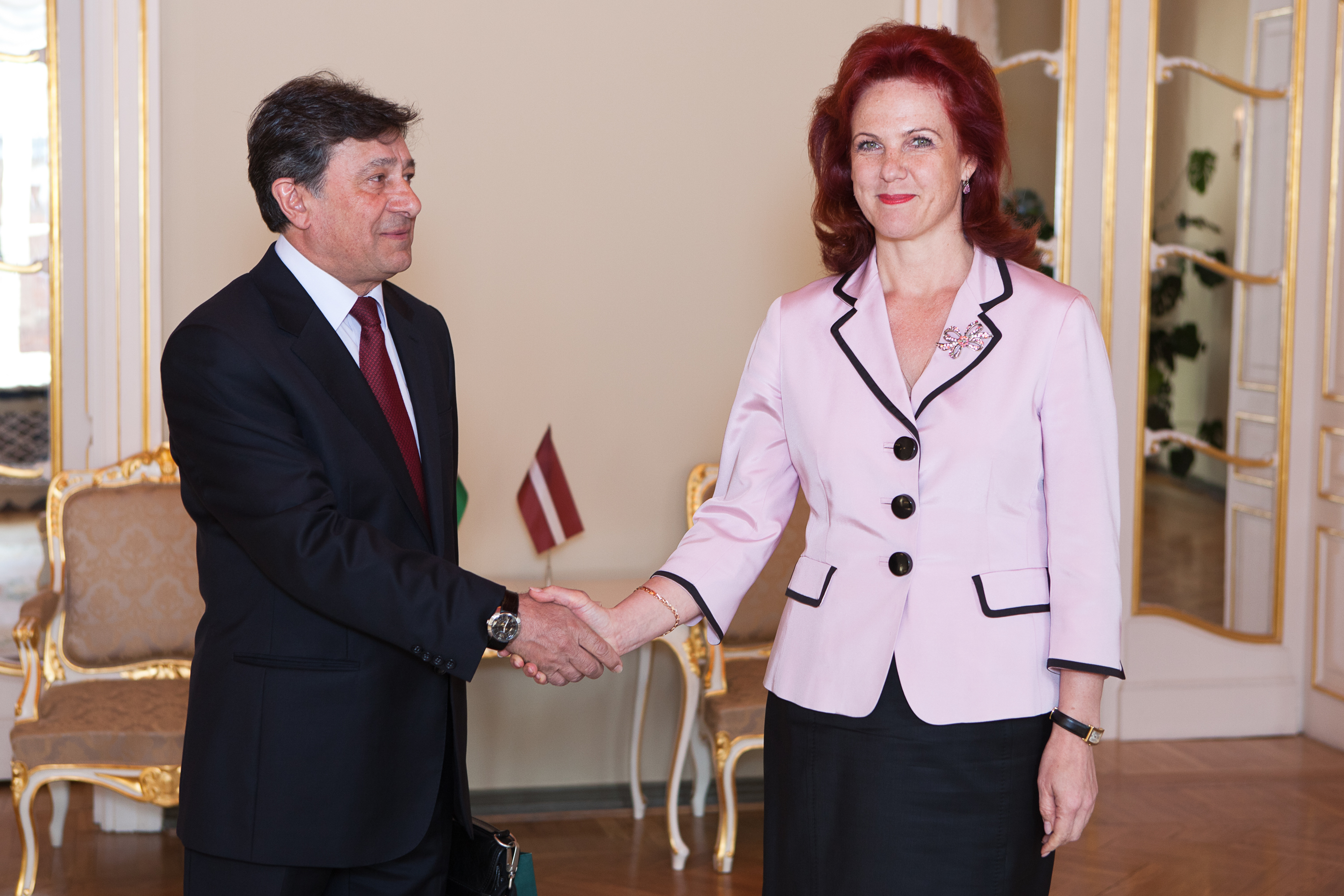2011.gada 27.aprīlis. Saeimas priekšsēdētāja Solvita Āboltiņa tiekas ar Uzbekistānas Republikas ārkārtējo un pilnvaroto vēstnieku Latvijas Republikā Kobiljonu S. Nazarovu (Kobiljon S. Nazarov). Foto: Saeima