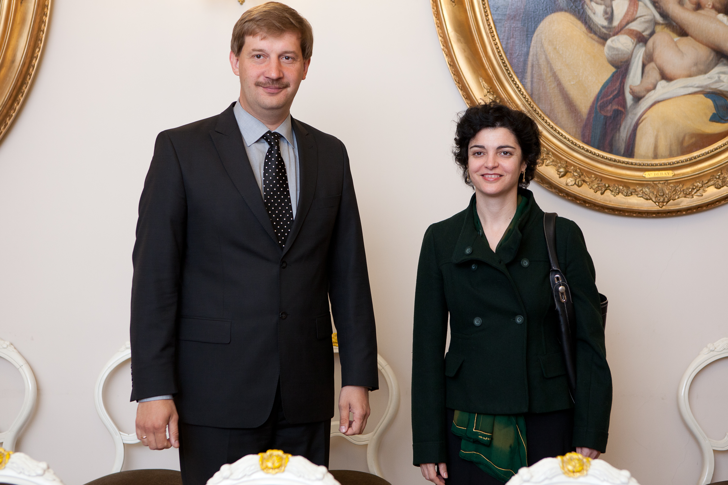 2011.gada 23.maijs. Saeimas priekšsēdētājas biedrs Andrejs Klementjevs tiekas ar Spānijas Karalistes ārkārtējo un pilnvaroto vēstnieci Latvijas Republikā V.E. Mariju Konsuelo Femeniju Gvardiolu (Maria Consuelo Femenia Guardiola). Foto: Saeima