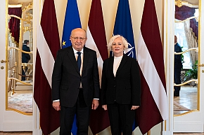 Kopā ar Saeimas priekšsēdētāju sarunā piedalījās arī Saeimas Aizsardzības komisijas priekšsēdētājs Raimonds Bergmanis.