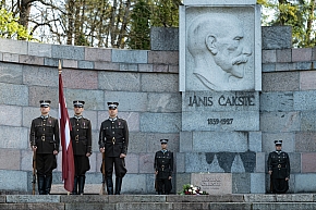 Ziedu nolikšanā piedalījās arī ministri, Satversmes tiesas pārstāvji un J.Čakstes ģimenes locekļi.