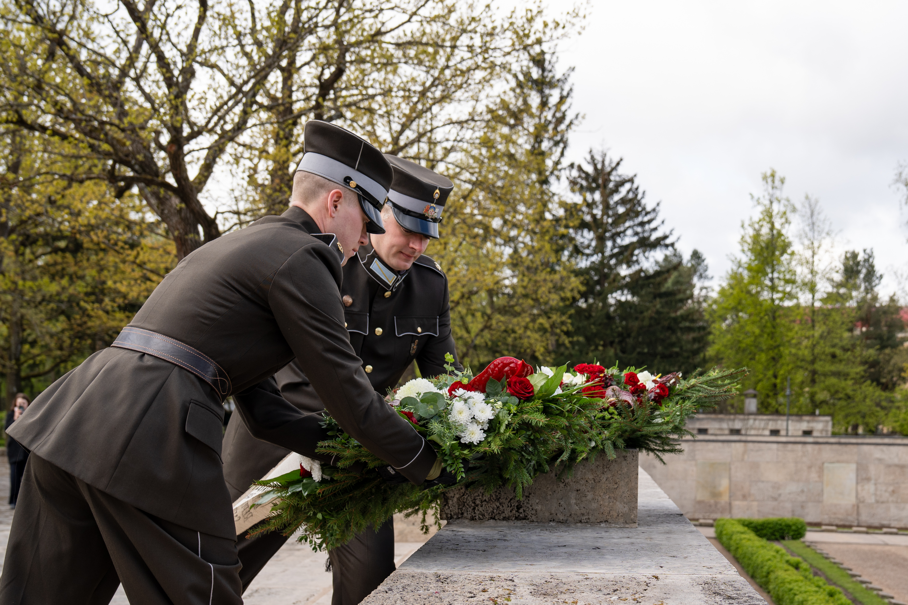 2025.gada 8.maijs. Svinīga vainagu nolikšanas ceremonija Rīgas Brāļu kapos. Foto: Ieva Ābele, Saeima Izmantošanas noteikumi: saeima.lv/lv/autortiesibas