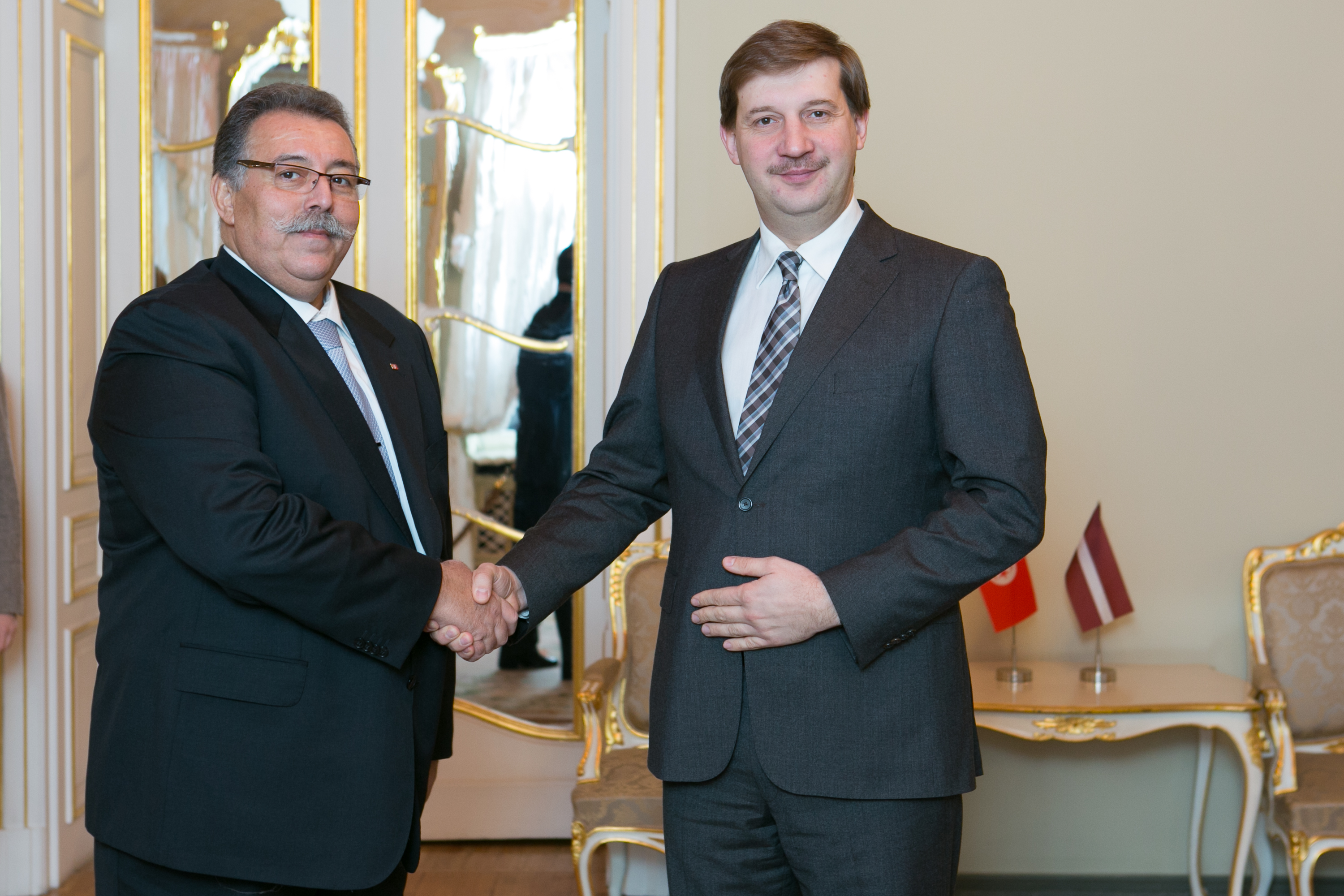 2014.gada 14.janvāris. Saeimas priekšsēdētājas biedrs Andrejs Klementjevs tiekas ar Tunisijas Republikas ārkārtējo un pilnvaroto vēstnieku Latvijas Republikā Slim Ben Jaāfar. Foto: Ernests Dinka, Saeimas Kanceleja Izmantošanas noteikumi: saeima.lv/lv/autortiesibas