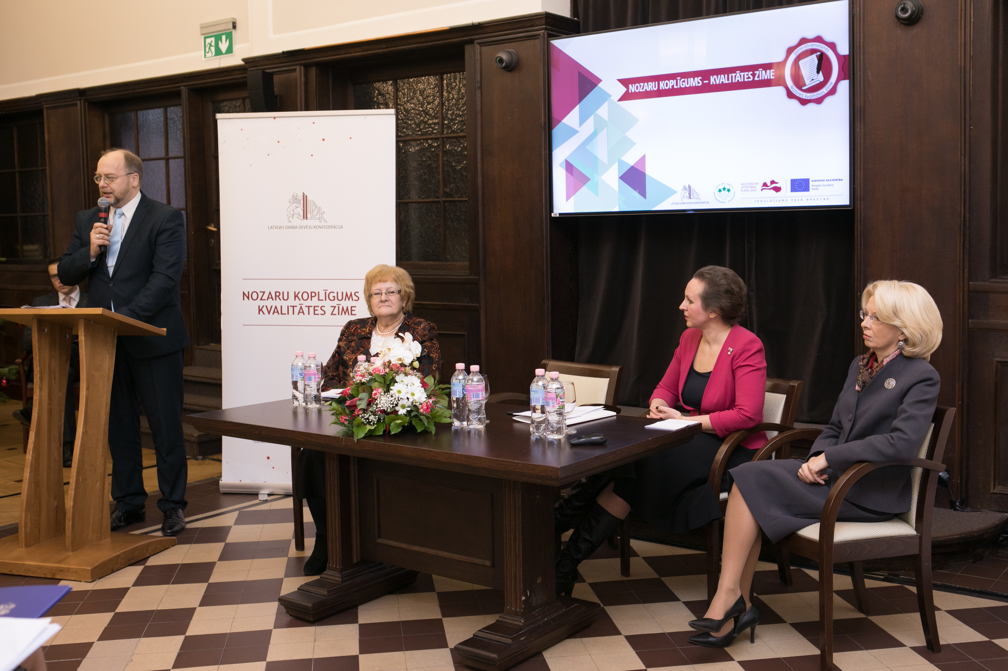 2017.gada 15.decembris. Saeimas priekšsēdētāja Ināra Mūrniece atklāj konferenci “Nozaru koplīgums – kvalitātes zīme”, kuru rīko sociālie partneri – Latvijas Darba devēju konfederācija un Latvijas Brīvo arodbiedrību savienība. Foto: Ernests Dinka, Saeima Izmantošanas noteikumi: saeima.lv/lv/autortiesibas