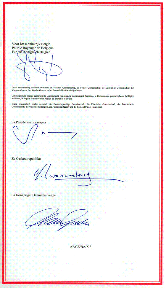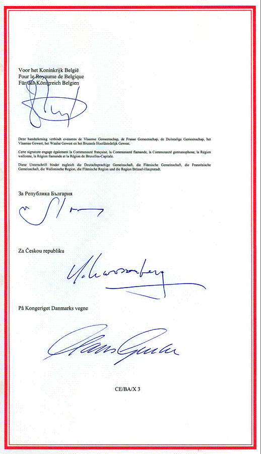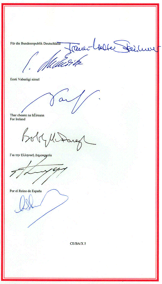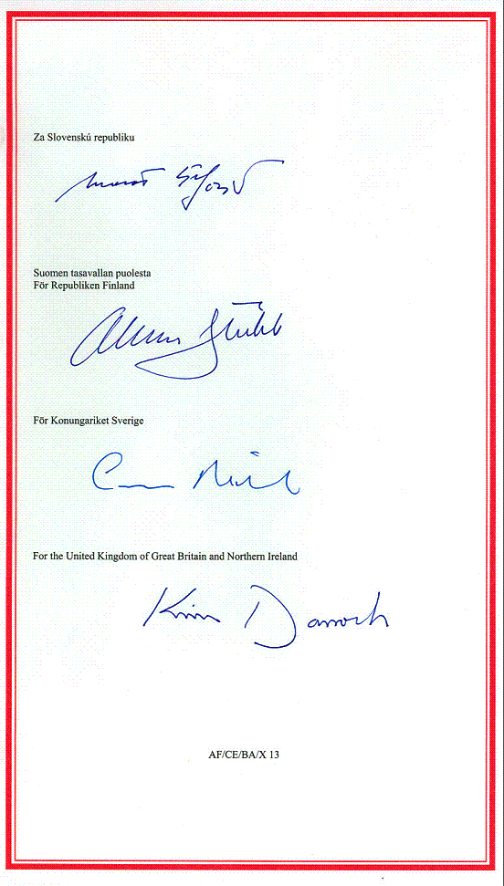 APLIECINOT, ka tajos šā nolīguma noteikumos, kas ir saskaņā ar Eiropas Kopienas dibināšanas līguma (turpmāk tekstā EK līgums) III daļas IV sadaļu, paredzēts, ka Apvienotā Karaliste un Īrija uzskatāmas par atsevišķām Līgumslēdzējām Pusēm un nevis par Kopienas dalībvalstīm, līdz brīdim, kad Apvienotā Karaliste vai Īrija (attiecīgajā gadījumā) paziņos Bosnijai un Hercegovinai, ka tā ir uzņēmusies saistības kā Kopienas daļa saskaņā ar protokolu par Apvienotās Karalistes un Īrijas nostāju, kurš pievienots LES un EK līgumam. Saskaņā ar protokolu par Dānijas nostāju, kas pievienots minētajiem līgumiem, tas pats attiecas arī uz Dāniju;