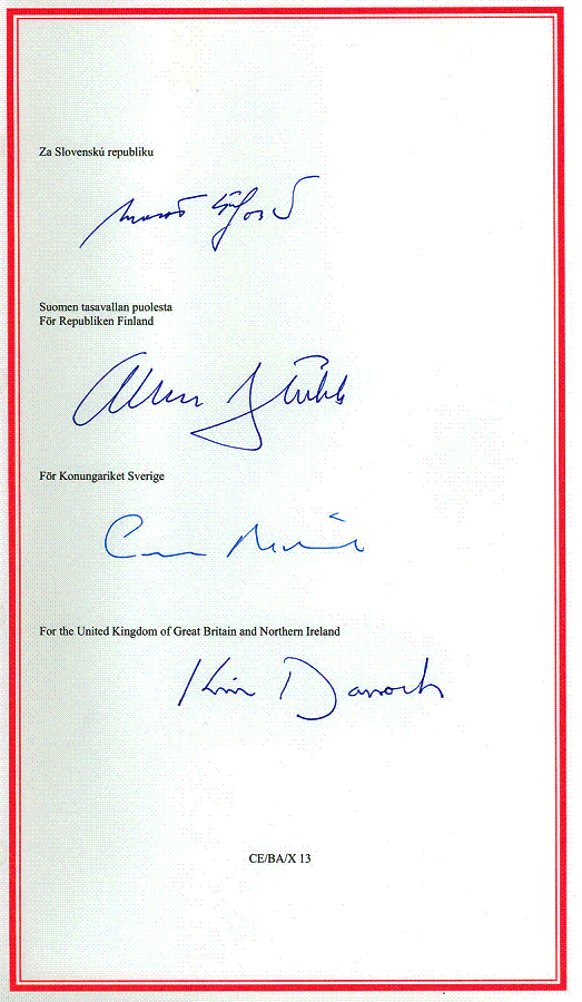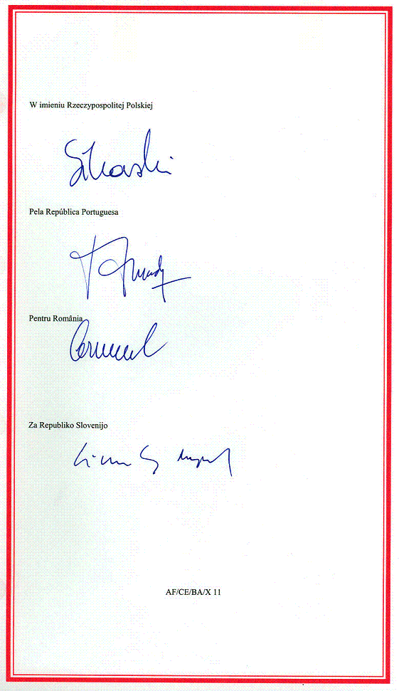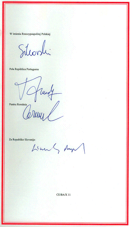 ŅEMOT VĒRĀ Pušu apņemšanos pilnībā īstenot visus principus un noteikumus, kuri paredzēti ANO hartā, EDSO noteikumos, īpaši Eiropas Drošības un sadarbības konferences Nobeiguma aktā (turpmāk tekstā Helsinku Nobeiguma akts), Madrides un Vīnes konferencē pieņemtajos noslēguma dokumentos, Parīzes Hartā par jaunu Eiropu, kā arī Deitonas/Parīzes Miera līgumā un Dienvidaustrumeiropas stabilitātes paktā, lai veicinātu stabilitāti reģionā un reģiona valstu sadarbību;