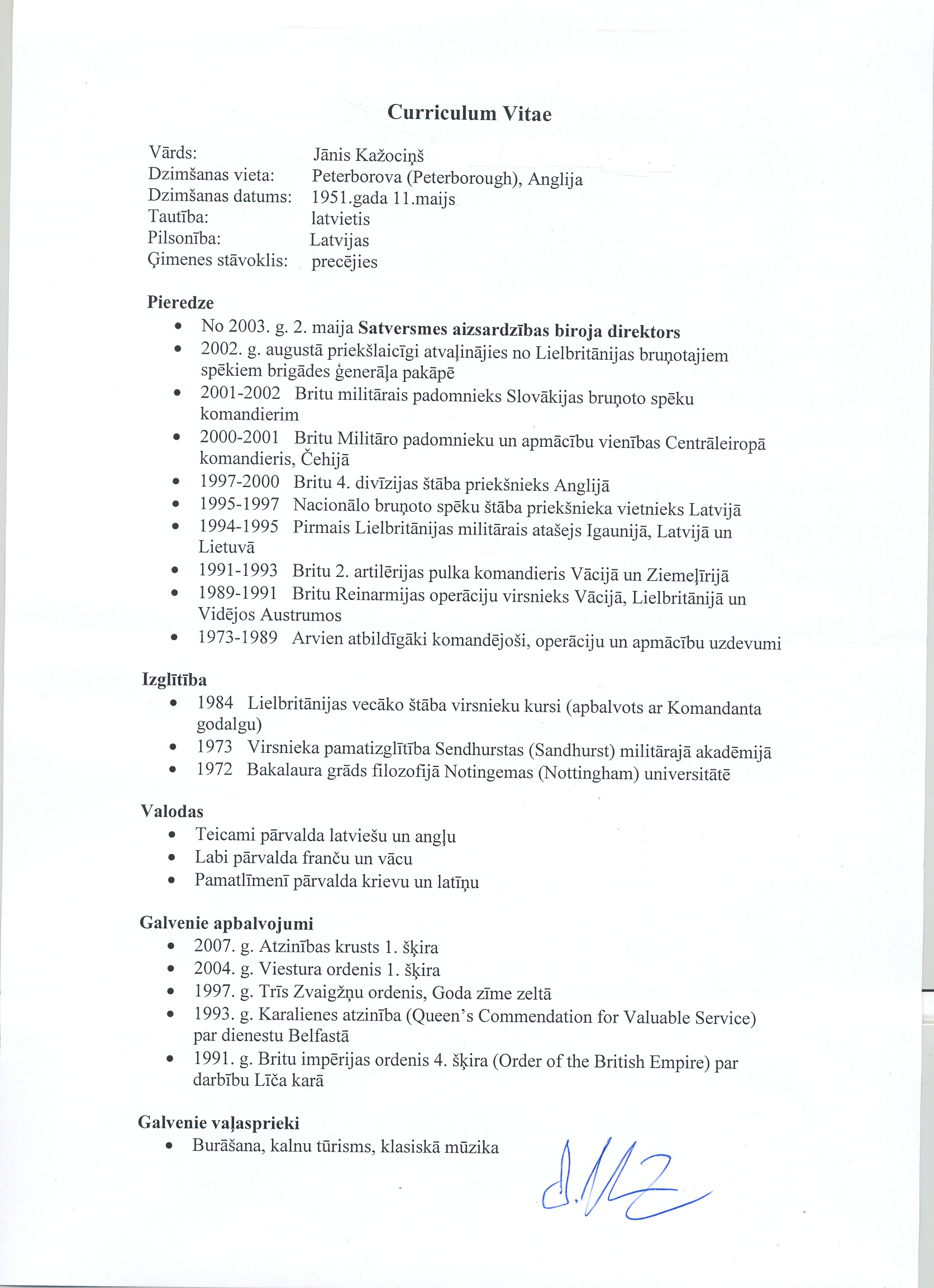 augstāko izglītību un to, ka uz viņu neattiecas Valsts drošības iestāžu likumā