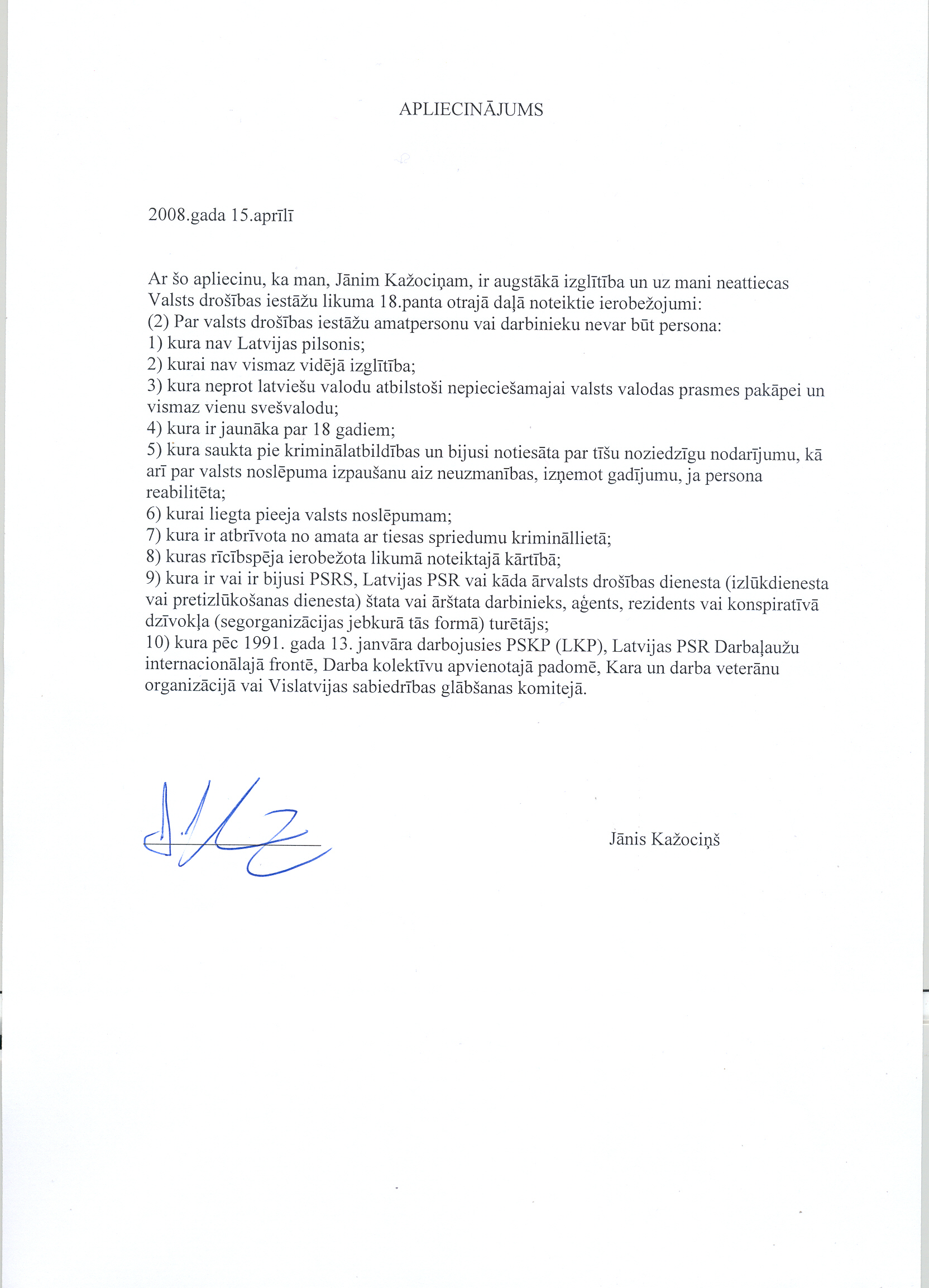 3. Jāņa Kažociņa apliecinājums par piekrišanu kandidēt Satversmes