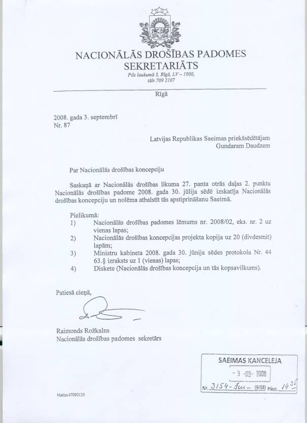Nacionālās drošības komisija savā šā gada 18.septembra sēdē ir izskatījusi Nacionālās drošības koncepciju.