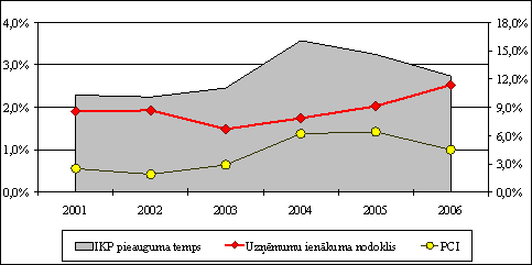 Uzņēmumu ienākuma nodokļa ieņēmumi tiek prognozēti, ņemot vērā paredzētās ekonomikas pieauguma tendences, likumdošanā noteikto nodokļa maksāšanas kārtību un prognozējamās izmaiņas nodokļu atvieglojumos. Prognozēts, ka 2006. gadā iekšzemes kopprodukts salīdzināmās cenās salīdzinājumā ar 2005. gadu palielināsies par 7,5 procentiem.
