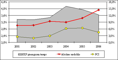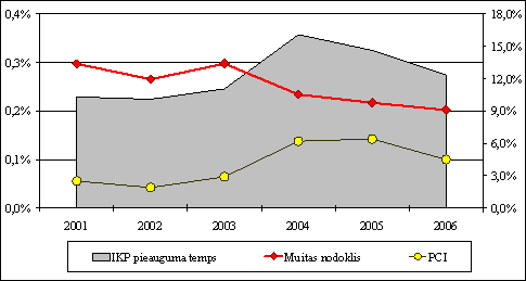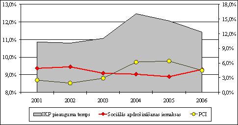 2004. gadā tiešo nodokļu īpatsvars iekšzemes kopproduktā bija 17,5 procenti. 2005. gadā īpatsvars arī tiek plānots 17,5% apmērā, bet 2006. gadā 18,3% apmērā no iekšzemes kopprodukta.