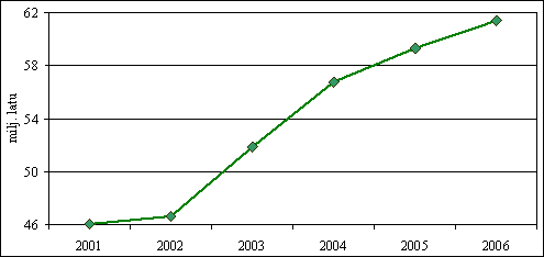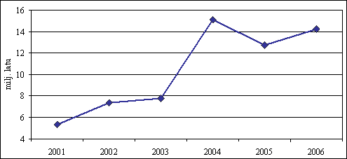 prognozēti 14,2 milj. latu apmērā, kas salīdzinājumā ar 2005. gada
