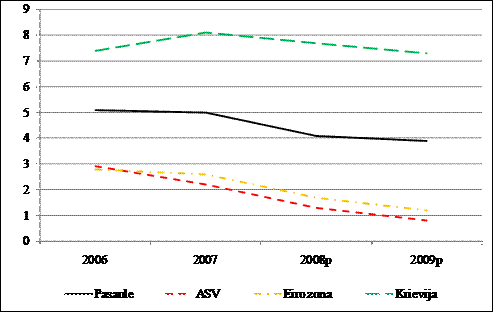 [1] Datu avots: SVF, Pasaules ekonomikas apskats, 2008. gada jūlijs; ECB, Makroekonomiskās prognozes eiro zonai, 2008. gada septembris.