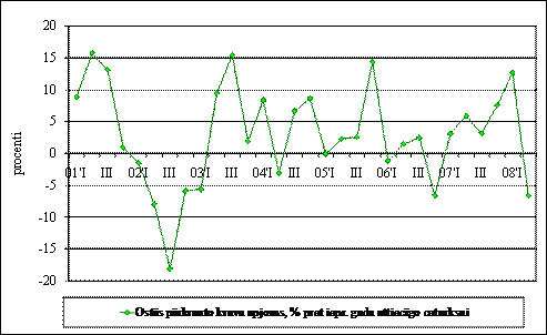 [2] Sadaļā Tautsaimniecības attīstība tiek analizēta situācija 2008. gada pirmajā pusē, tomēr atsevišķās kategorijas, kur ir pieejama operatīvāka statistiskā informācija, tiek skatīta attīstība 2008. gada 7 vai 8 mēnešos.