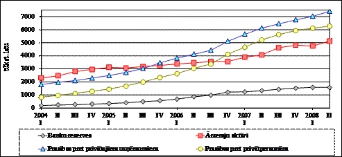 Analizējot monetāros rādītājus, ir novērojama to lejupvērsta korekcija. Skaidra nauda apgrozībā (bez atlikumiem banku kasēs) ir samazinājusies, sākot no 2007. gada II ceturkšņa, ko veicinājusi pakāpeniska iekšējā pieprasījuma samazinājums, kā arī bezskaidras naudas norēķinu pieaugums.