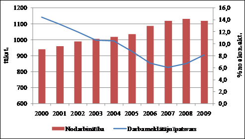 Samazinoties nodarbinātībai, ir sagaidāms bezdarba pieaugums. Darba meklētāju īpatsvars 2009. gadā varētu pieaugt līdz 8,1 procentam. Reģistrētā bezdarba līmenis būs nedaudz zemāks par darba meklētāju īpatsvaru.
