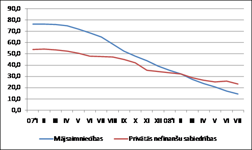 2007. gadā saglabājās augsti kreditēšanas pieauguma tempi, tomēr sakarā ar stingrāku kreditēšanas politikas ieviešanu, tika novērots kreditēšanas pieauguma tempu straujš samazinājums, sākot ar 2007. gada martu. Kreditēšanas pieauguma tempiem 2008. gada pirmajā pusē turpinājās lejupejoša tendence, samazinoties iedzīvotāju ekonomiskajai aktivitātei, kā arī bankām saglabājot nogaidošu pozīciju attiecībā uz jaunu kredītu izsniegšanu. Ietekmi uz kreditēšanas pieauguma tempu samazināšanos ir atstājusi arī finanšu krīze ASV, kas palielinājusi nestabilitāti finanšu tirgos visā pasaulē. Pieaugot riskam, ir novērojama arī kredītu sadārdzināšanās.