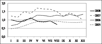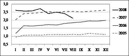 2008. gada astoņos mēnešos ieņēmumi no ārvalstu finanšu