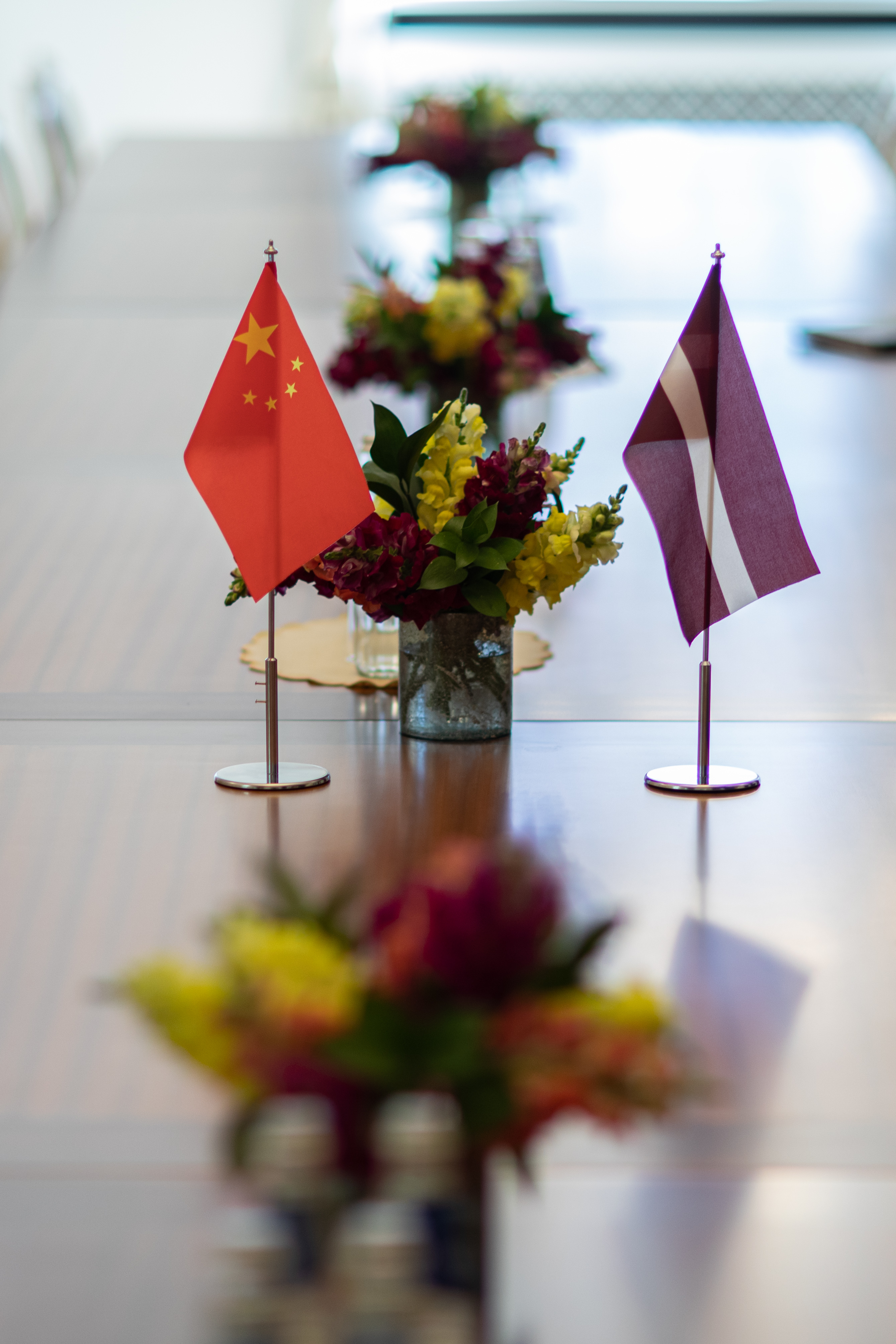 2023.gada 29.jūnijs. Saeimas sekretārs Armands Krauze un deputāti tiekas ar Ķīnas Tautas Republikas ārkārtējo un pilnvaroto vēstnieku Latvijas Republikā Tanu Sungeņu (Tang Songgen). Foto: Reinis Inkēns, Saeima Izmantošanas noteikumi: saeima.lv/lv/autortiesibas
