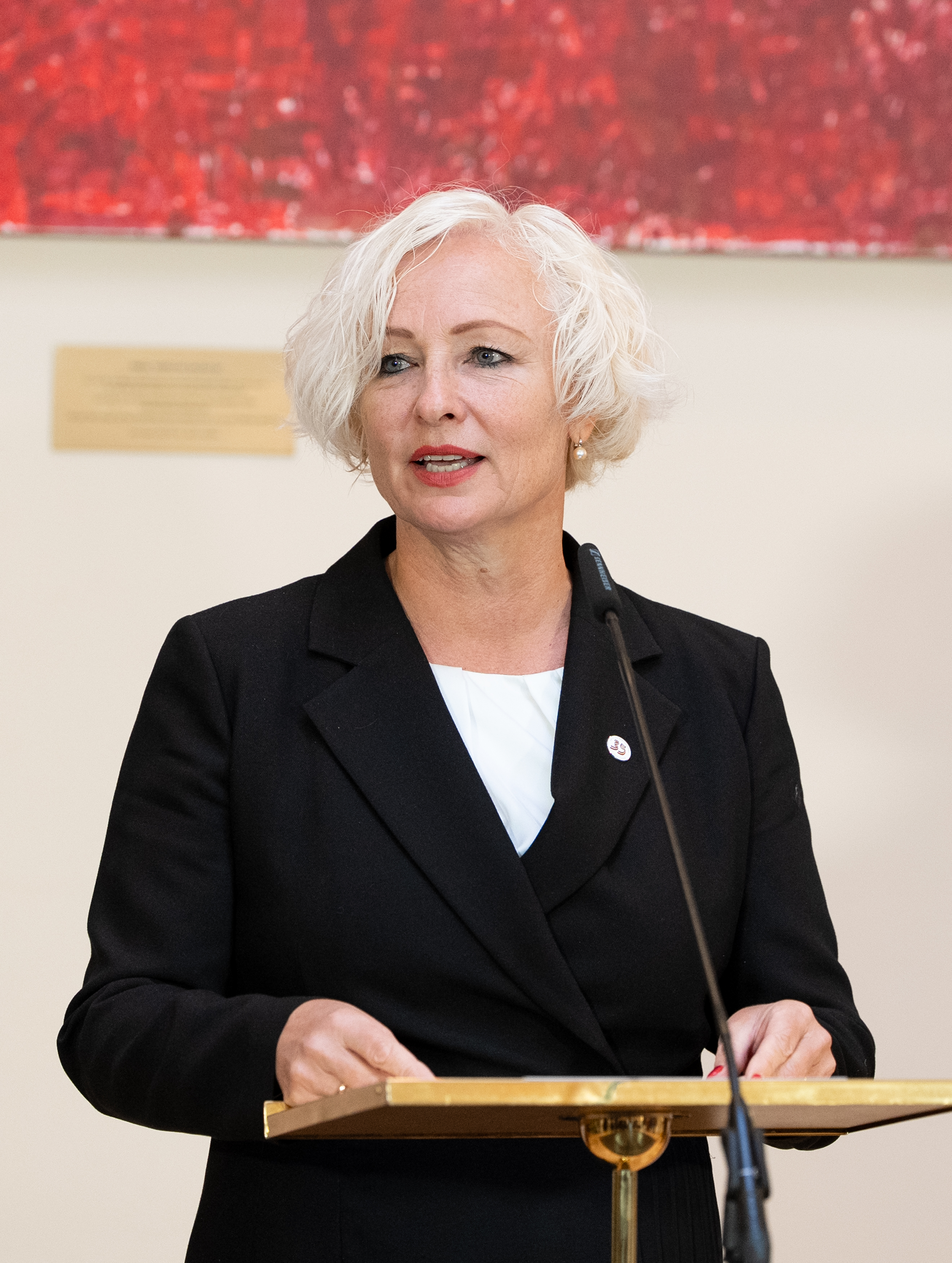 2025.gada 25.septembris. Mākslinieces Džemmas Skulmes gleznu izstādes "Atgriešanās" atklāšana. Foto: Ieva Ābele, Saeima Izmantošanas noteikumi: saeima.lv/lv/autortiesibas