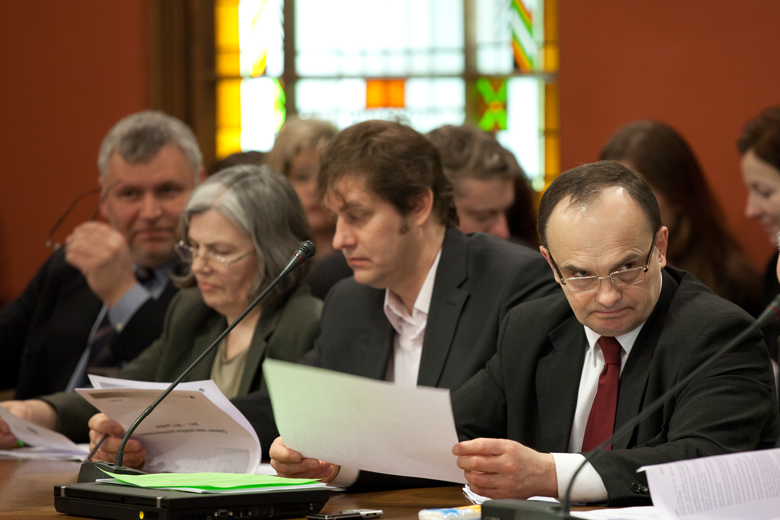 2011.gads 8.marts. Sociālo un darba lietu komisijas un Budžeta un finanšu (nodokļu) komisijas deputāti vērtē ģimenes valsts politikas pamatnostādnes. Foto: Saeima