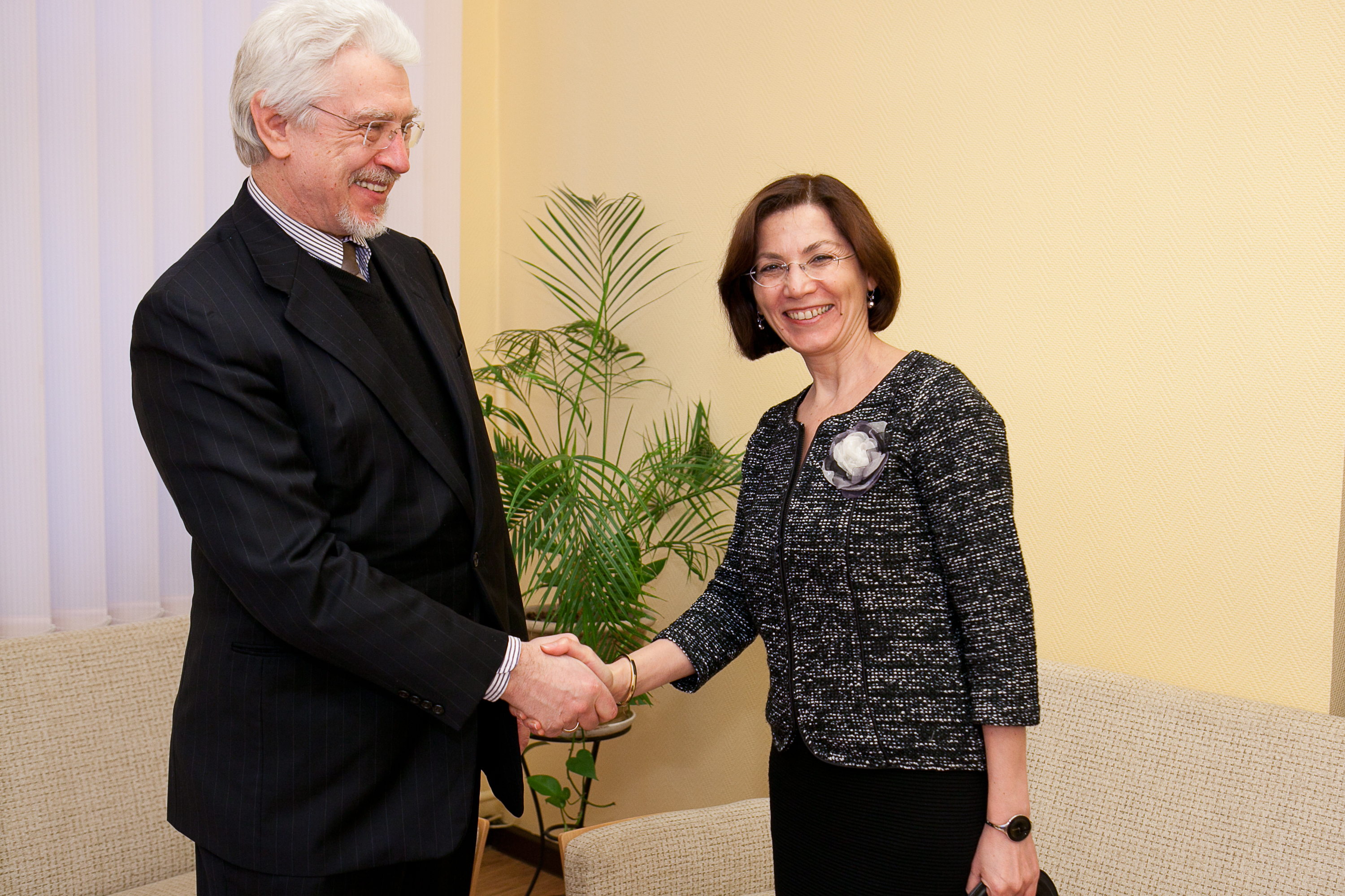 2012.gada 7.februāris. Saeimas Ārlietu komisijas priekšsēdētājs Ojārs Ēriks Kalniņš tiekas ar Turcijas Republikas ārkārtējo un pilnvaroto vēstnieci Latvijas Republikā Šerifi Serapu Ozdžoškunu (Serife Serap Özcoşkun). Foto: Ernests Dinka, Saeimas Kanceleja