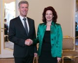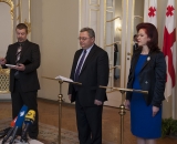 Solvitas Āboltiņas un Gruzijas parlamenta priekšsēdētāja Dāvida Usupašvili preses brīfings
