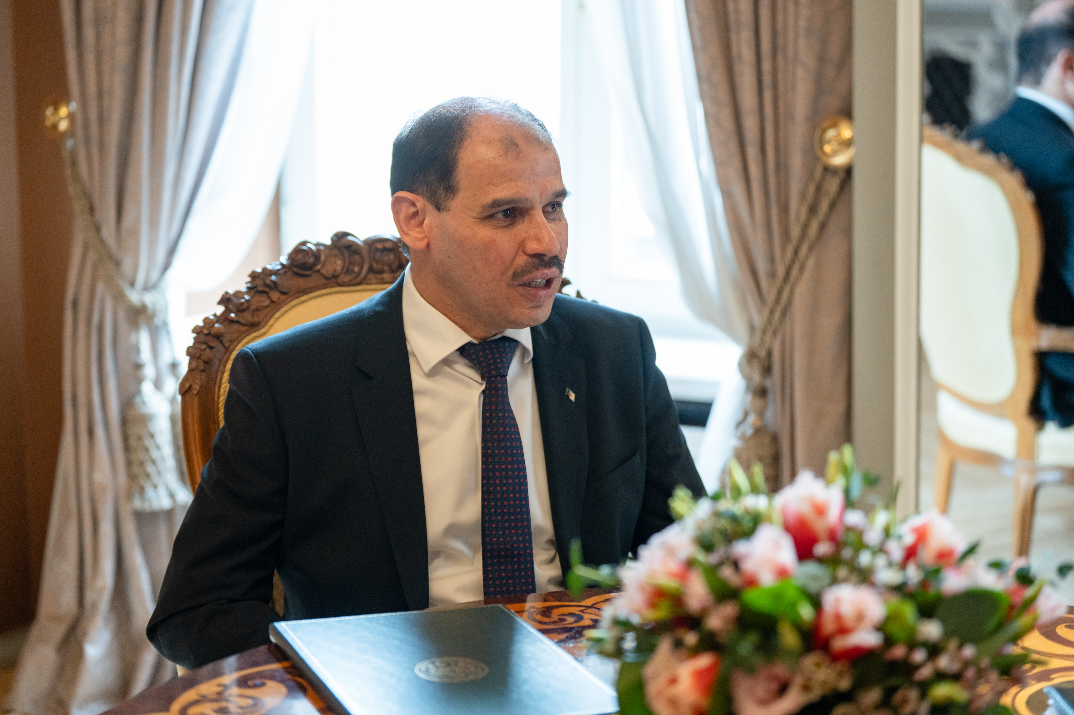 2025.gada 3.marts. Saeimas priekšsēdētājas biedre Antoņina Ņenaševa tiekas ar Alžīrijas Tautas Demokrātiskās Republikas ārkārtējo un pilnvaroto vēstnieku Latvijas Republikā Muhammadu Salāhuddīnu Belaidu (Mohamed Salah Eddine Belaid). Foto: Ieva Ābele, Saeima Izmantošanas noteikumi: saeima.lv/lv/autortiesibas