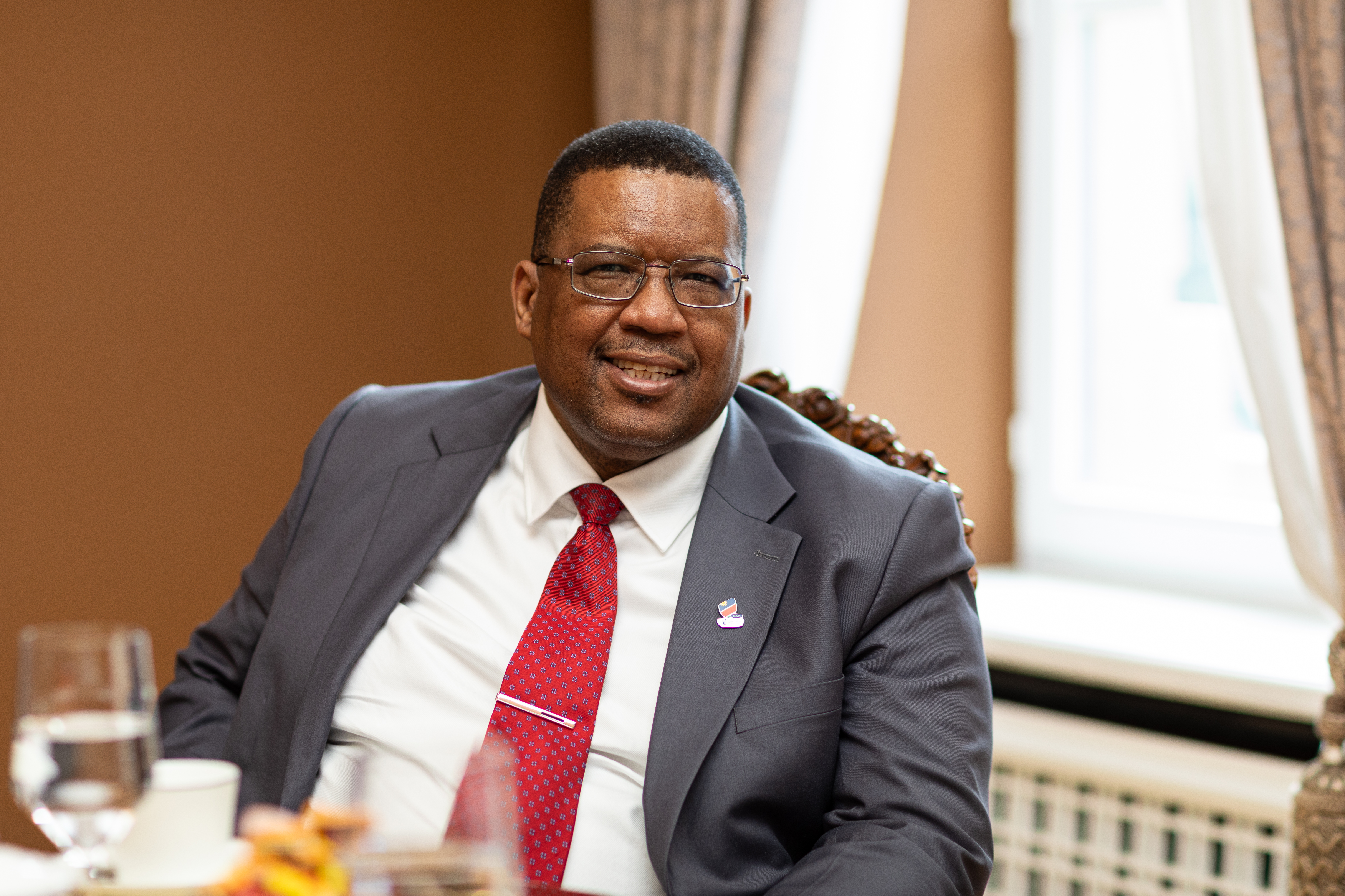 2025.gada 20.augusts. Saeimas priekšsēdētājas biedre Zanda Kalniņa-Lukaševica tiekas ar Namībijas Republikas ārkārtējo un pilnvaroto vēstnieku Latvijas Republikā Čārlzu Bernartu Džosobu (Charles Bernardt Josob). Foto: Reinis Inkēns, Saeima Izmantošanas noteikumi: saeima.lv/lv/autortiesibas