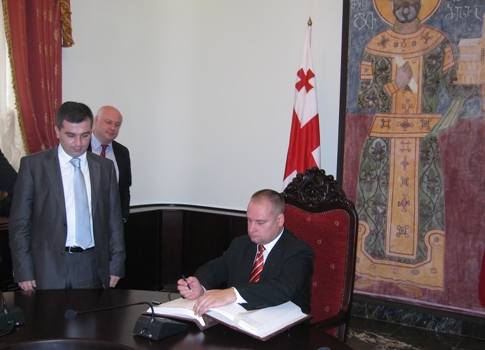Uzsākot darba vizīti Gruzijā, Saeimas priekšsēdētājs Gundars Daudze pirmdien, 29.septembrī, tikās ar Gruzijas parlamenta priekšsēdētāju Davidu Bakradzi (David Bakradze).