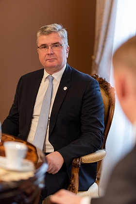 2022.gada 24.novembris. Saeimas priekšsēdētājs Edvards Smiltēns tiekas ar Ungārijas ārkārtējo un pilnvaroto vēstnieku Latvijas Republikā Ferencu Gāboru Bāņai (Ferenc Gábor Bányai). Foto: Ieva Ābele, Saeima Izmantošanas noteikumi: saeima.lv/lv/autortiesibas