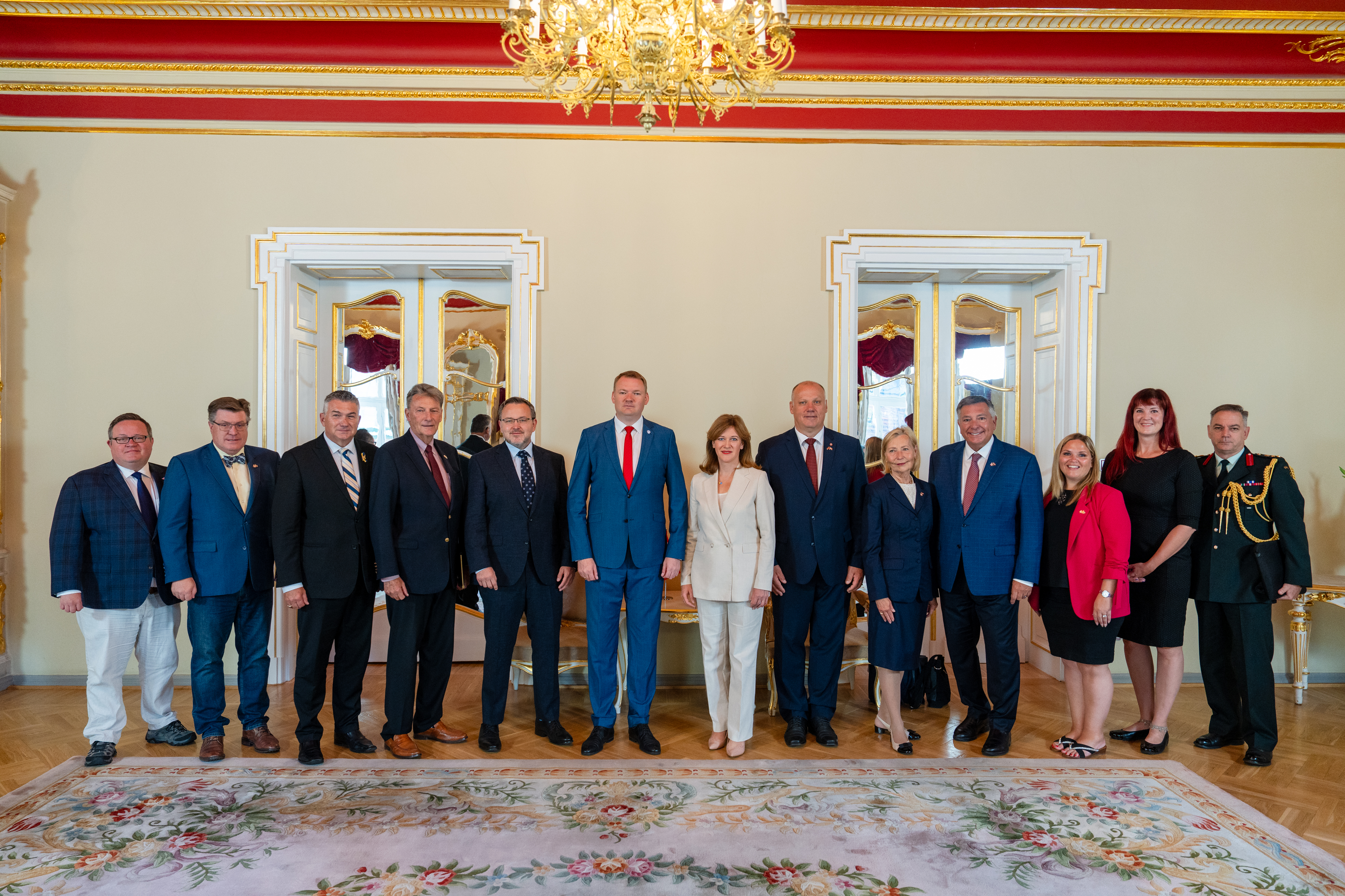 2023.gada 23.augusts. Saeimas priekšsēdētājs Edvards Smiltēns tiekas ar Kanādas parlamenta Pārstāvju palātas Nacionālās aizsardzības komisijas delegāciju. Foto: Ieva Ābele, Saeima Izmantošanas noteikumi: saeima.lv/lv/autortiesibas