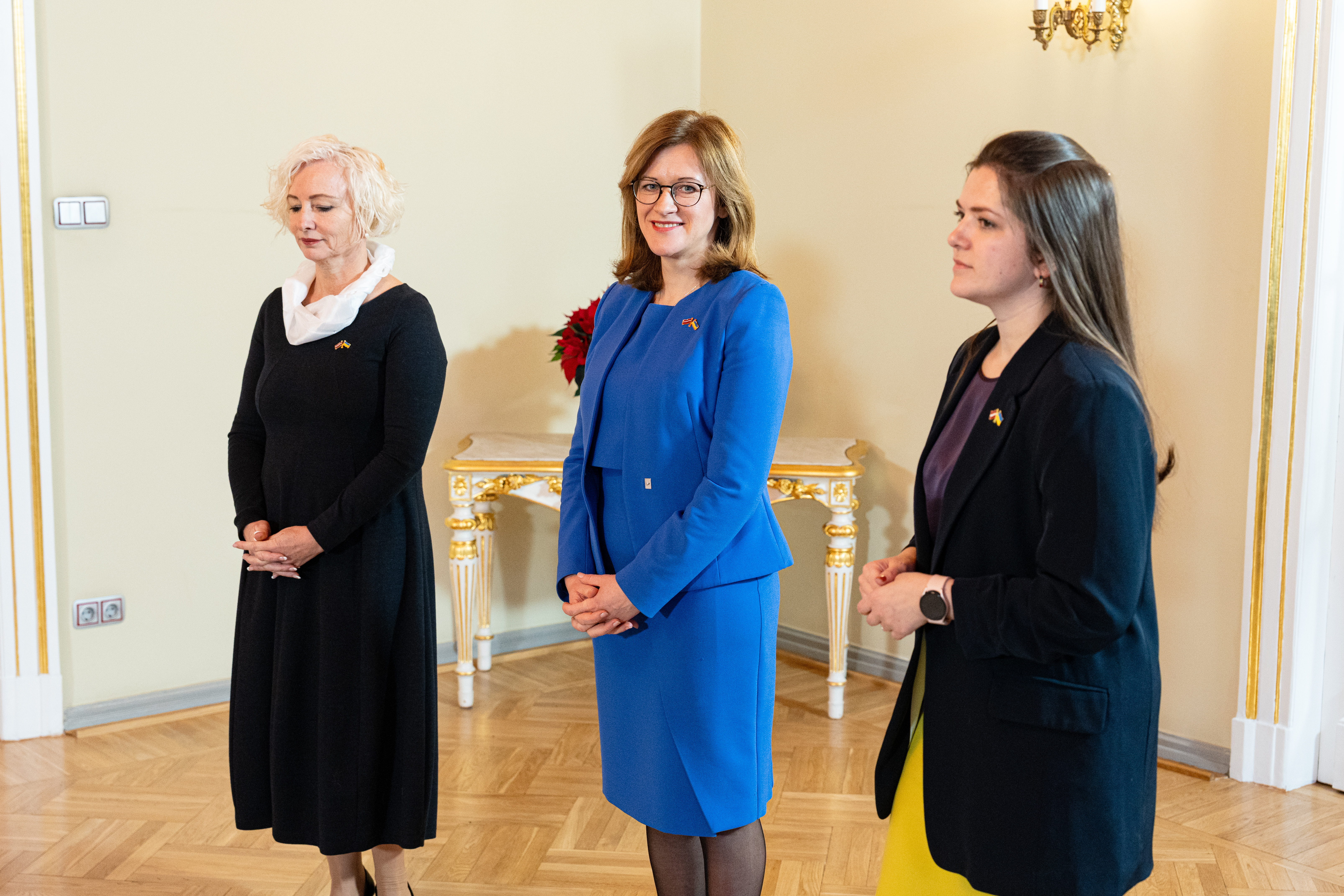 2023.gada 11.decembris. Saeimas priekšsēdētāja Daiga Mieriņa tiekas ar Ukrainas parlamenta priekšsēdētāja vietnieci Olenu Kondratjuku (Olena Kondratiuk). Foto: Reinis Inkēns, Saeima Izmantošanas noteikumi: saeima.lv/lv/autortiesibas