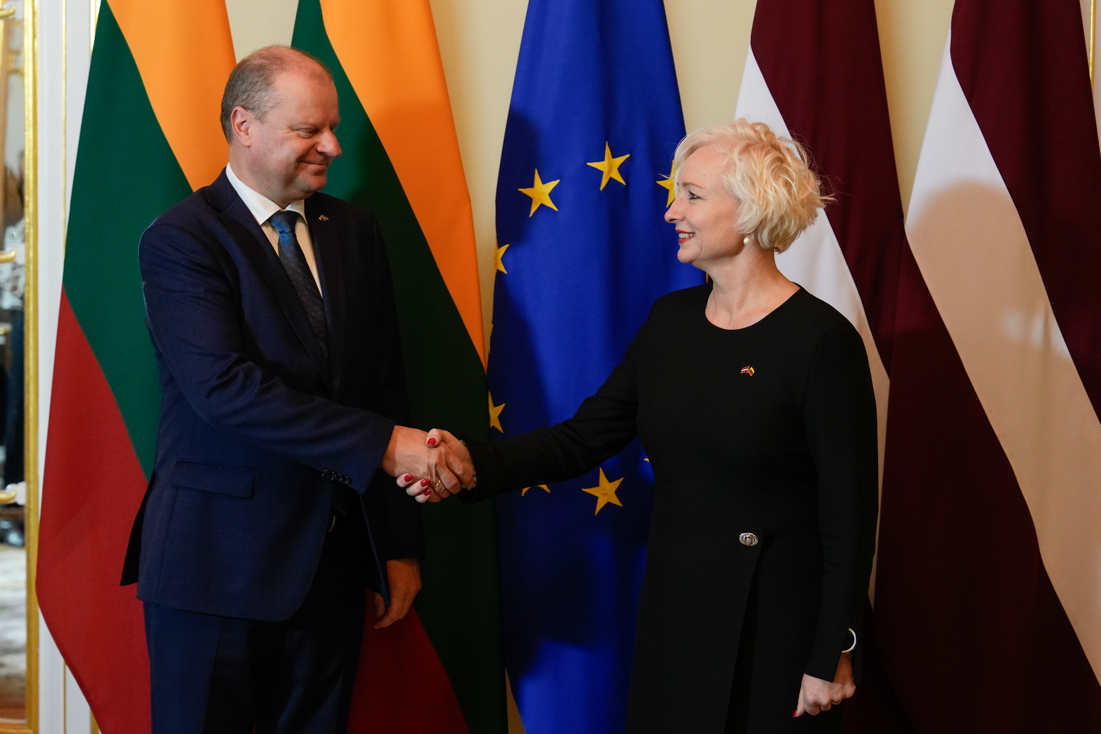 2024.gada 3.decembris. Saeimas priekšsēdētāja Daiga Mieriņa tiekas ar jaunievēlēto Lietuvas Seima priekšsēdētāju Sauļu Skverneli (Saulius Skvernelis). Foto: Ieva Ābele, Saeima Izmantošanas noteikumi: saeima.lv/lv/autortiesibas