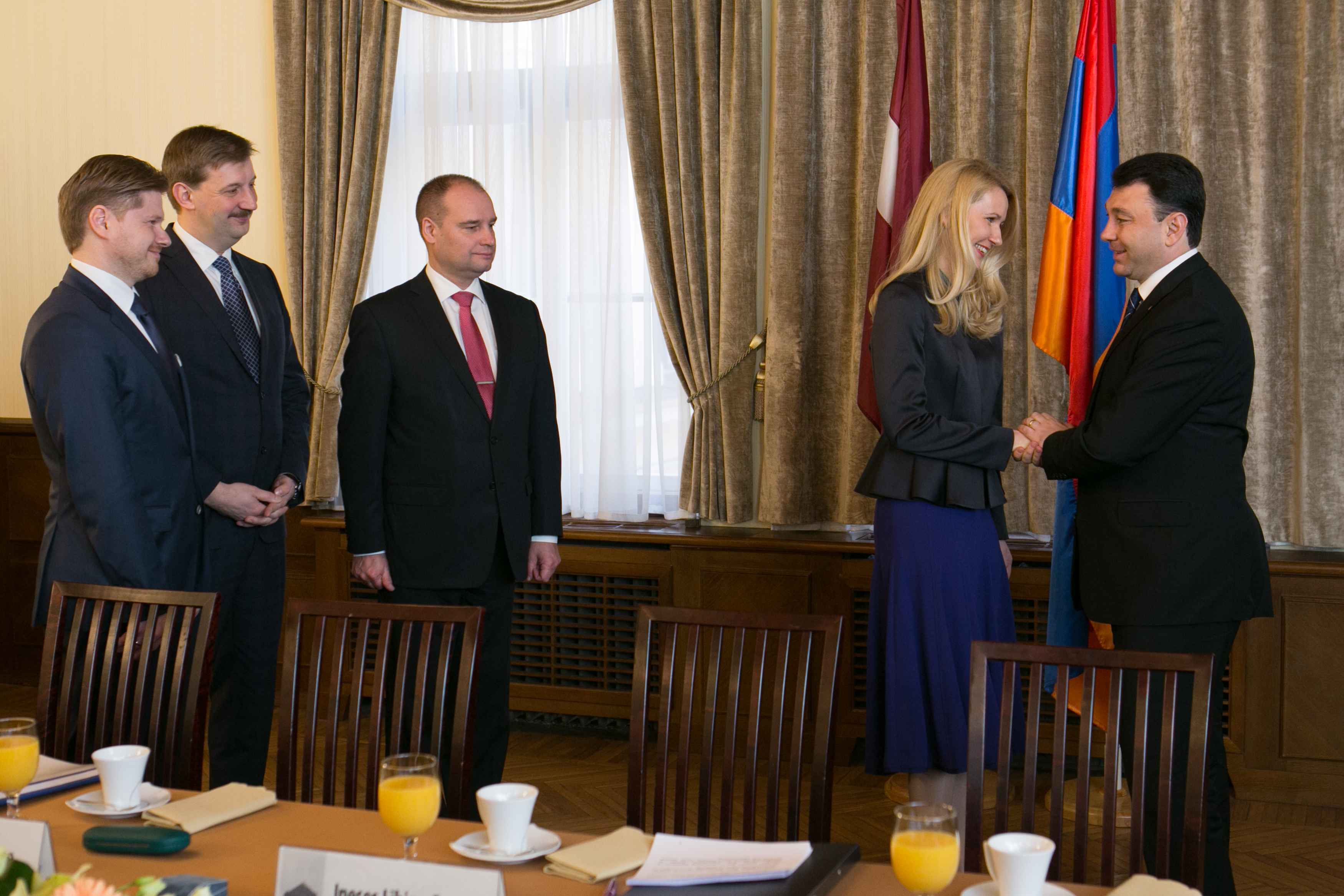 2015.gada 13.marts. Saeimas priekšsēdētājas biedri Inese Lībiņa-Egnere un Gundars Daudze un Saeimas sekretārs Andrejs Klementjevs tiekas ar Armēnijas Republikas Nacionālās Asamblejas prezidenta vietnieku Eduardu Šarmazanovu (Eduard Sharmazanov). Foto: Ernests Dinka, Saeimas Kanceleja Izmantošanas noteikumi: saeima.lv/lv/autortiesibas