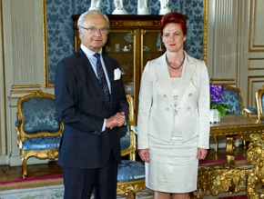 Saeimas priekšsēdētāja Solvita Āboltiņa otrdien, 10.maijā, Stokholmā tiekoties ar Zviedrijas karali Kārli XVI Gustavu (Carl XVI Gustaf), pārrunāja Latvijas 20 neatkarības gados sasniegto un pateicās par Zviedrijas ieguldījumu Latvijas neatkarības atjaunošanā.